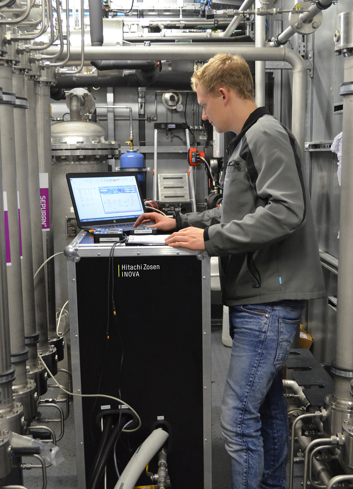 Membrane Performance test.jpg; Mit dem transportablen Prüfstand werden Trenngüte und -leistung der Membranmodule in der Aufbereitungsanlage getestet Text (Foto: Kanadevia Inova BioMethan)